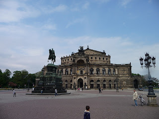 We parked near the train station per Rick Steve's advice and then took the tram into the center of town. Dresden has a long history as the captial of Saxony and in the 1700s it became known as a leading European city for art and technology. In the late 1800s a large military facility was built there and thus in WWII it became an important target. On Feb 13, 1945 it was completely flattened. In reading about it apparently Kurt Vonnegut witnessed the bombing as a POW and his book Slaughterhouse Five is based on that experience. It was a highly controvesial bombing because many civilians (mostly women and children) died.